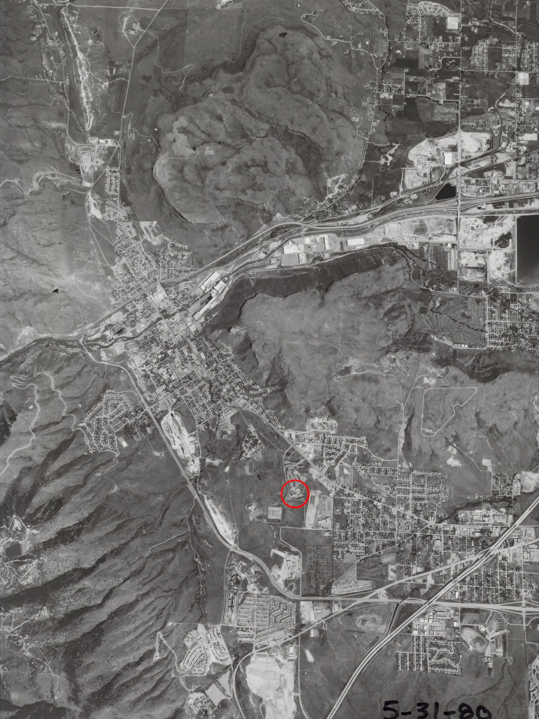 Aerial view of Golden, 1980, from the Bill Robie collection. Early Johnson Elementary is circled in red