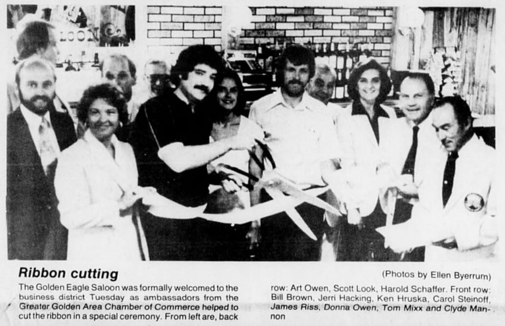 The whoopee, shoot-em-up, wild west days are over at the Golden Eagle Saloon.... Two young men in white hats, Ken Hruska and Jim Riss, took the lounge over in July of 1980 and decided there was no enough room in that bar for both the bankers and the bikers. The rowdies would have to leave."