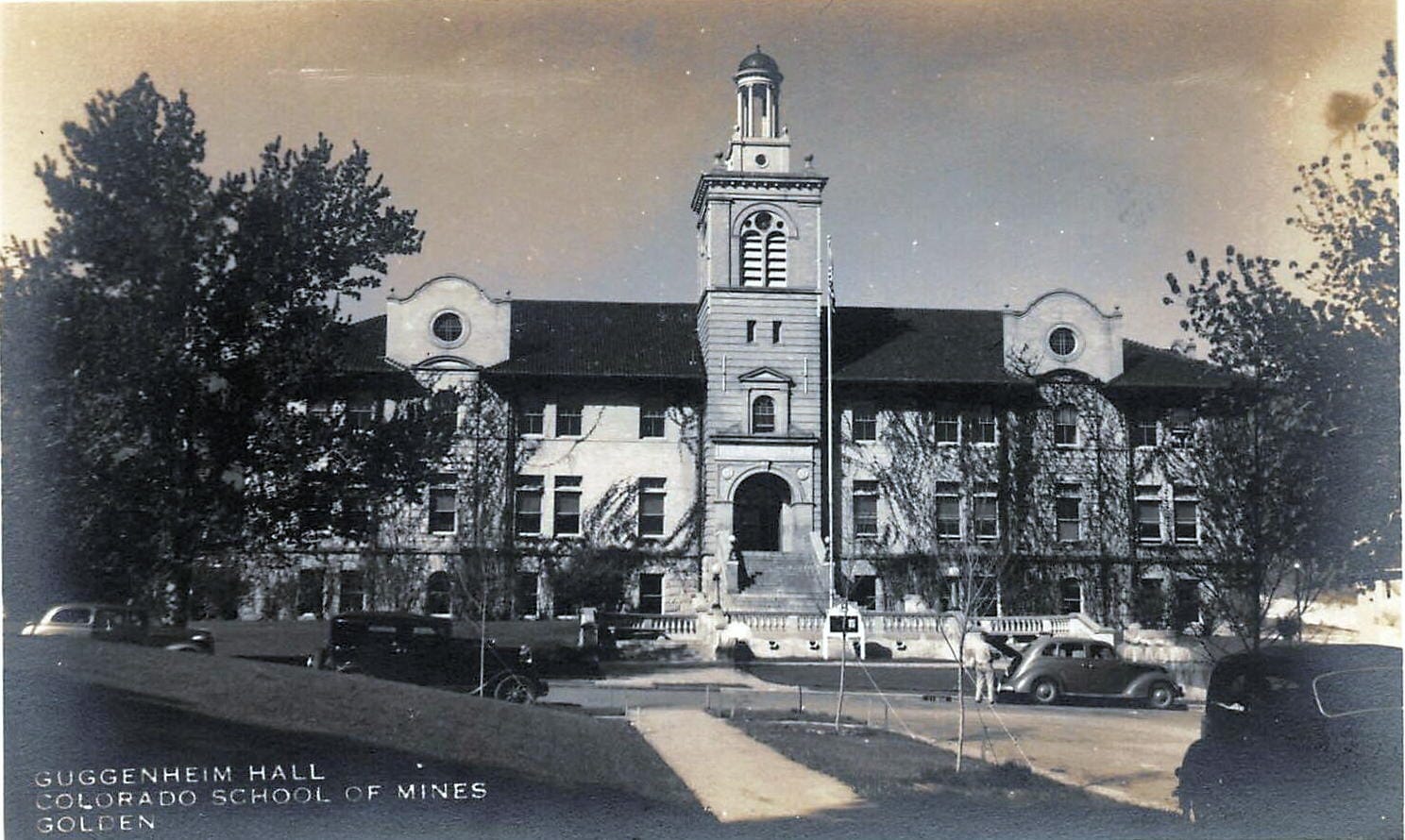 The west end of the mall was (and is) Guggenheim Hall (1906). The east end would be Hill Hall (1958) and “the new Professional Communications and Humanities Center” (later called the Green Center, which opened in 1972).