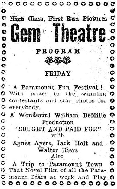 The September 14, 1922 Colorado Transcript announced that the Golden Gem theatre was hosting a Flapper Night, with a special program produced by Paramount Studio.