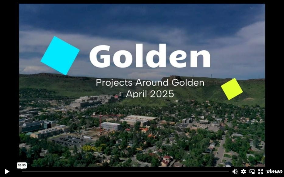 My readers always enjoy Pat Klein's aerial images of Golden. With so much construction in town lately, he's been capturing some interesting video footage of Mines apartments (west of Hwy 6), the new undergrad dorm (19th & Illnois), "The Col" (17270 Colfax), Ulysses Park, Lena Gulch, Canyon View Apartments (off Golden Gate Canyon Road), and Clayworks (9th and Ford).