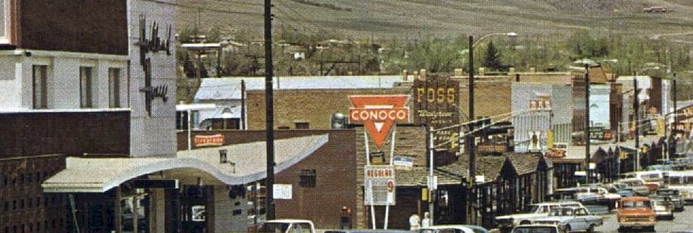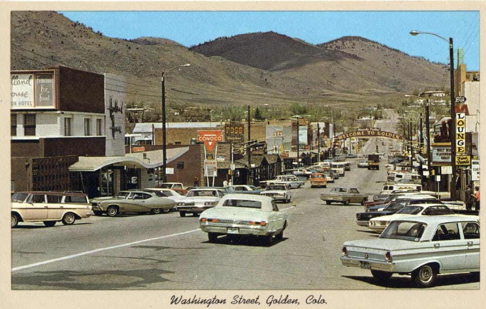 In the 1950s, shopping centers began to proliferate in the United States. They severely eroded business in historic downtown shopping districts like Golden’s. By the late 1950s, Golden’s merchants were becoming desperate. Much brainstorming resulted in a plan by the Golden Chamber: they would market the entire downtown as a single shopping center, with coordinated marketing campaigns and a new, unified look. Western movies were very popular at the time, and they decided to give downtown some western flare by adding covered walkways. This was quite appropriate for Golden, and entirely in keeping with Golden’s actual historic look: