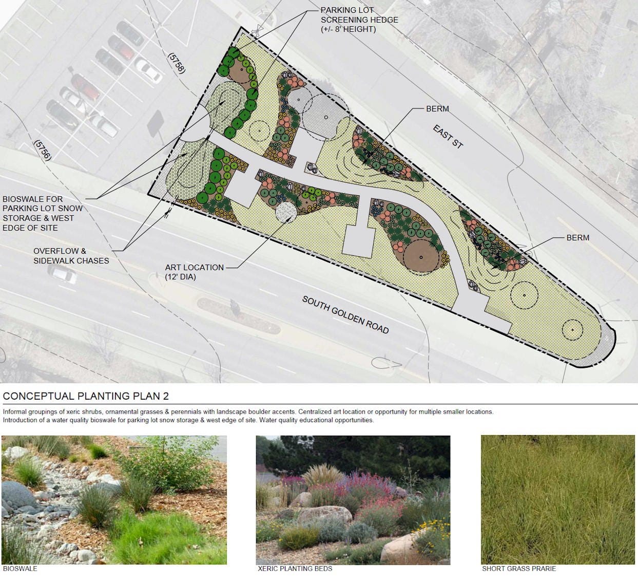 Staff will present a plan for the "Triangle Park" (the triangle of land at 2600 East St.). The City has received a grant to do turf replacement in this area. They will remove the grass and plant drought tolerant plants.