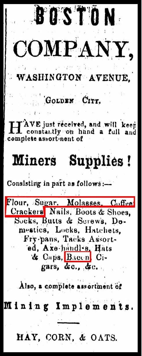 Grocery shopping at the Boston Company – Advertisement from the December 21, 1859 Western Mountaineer