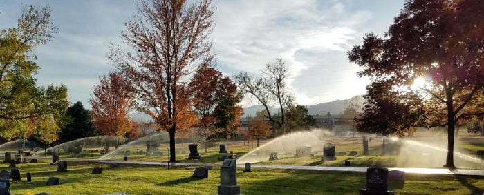 Until the mid-1930s, the Golden Cemetery lacked an irrigation system–which meant no trees. Despite the on-going Depression, then-Mayor A. E. Jones made cemetery improvements his personal mission. He asked the public for donations of pipe and cobbled together an irrigation system. Then he encouraged people to donate trees from their own yards. More trees were added in the 1950s, when the City transplanted dozens of evergreens from the Beaver Brook property.