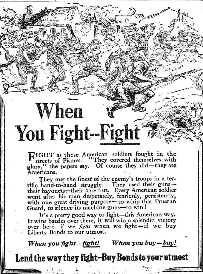 PSA from the October 3, 1918 Colorado Transcript encouraging purchase of war bonds