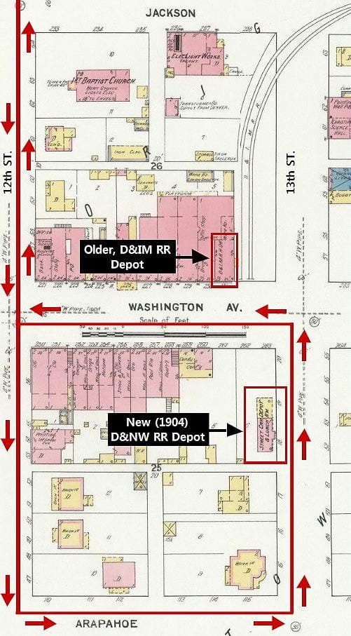 The D&NW came through Arvada. It entered on 12th Street, circled the block to Arapahoe Street, and terminated on 13th Street, on the west side of Washington Avenue.