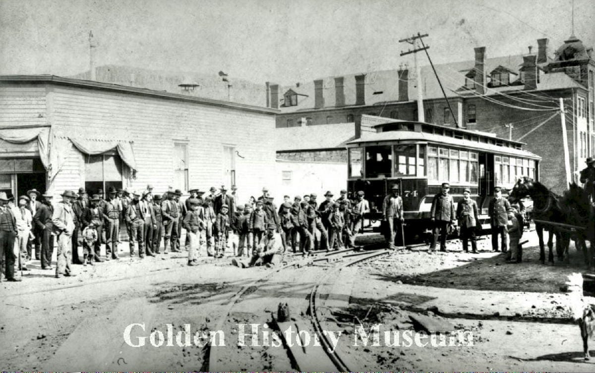 Golden’s first interurban (the Denver & Intermountain, or D&IM) opened in 1891. It came through Lakewood and terminated on 13th Street, on the east side of Washington Avenue. Their ticket office was inside the Linder Hardware building.