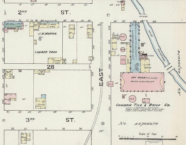 The Cambria kiln operated 13 years until 1892, when the local lime seams were exhausted and cheaper and better Portland cement sidetracked the lime/mortar business in Golden.