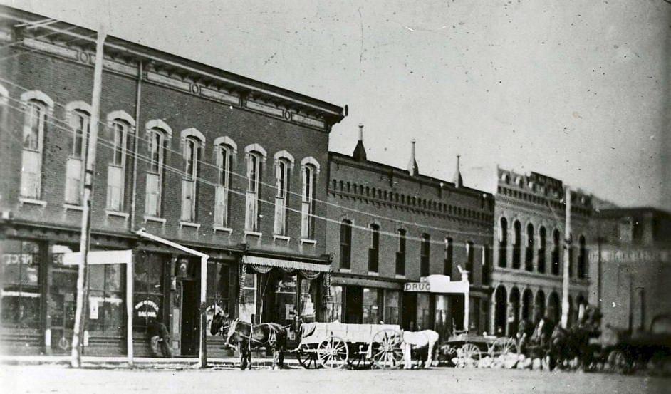 Left to Right – Golden Opera House (1879), Harrison Block (1867), Everett Block (1873) – Photo circa 1880 – Golden History Museum Collection