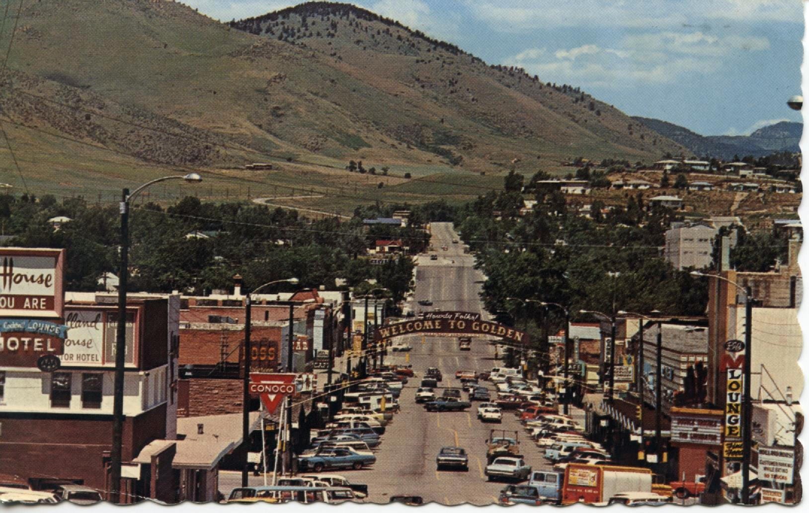 Yesterday, I wrote about the first 30 years of Golden’s learning to accommodate automobiles in downtown. It was a never-ending quest. Golden has always attracted its share of non-residents: the School of Mines and Coors both bring people to central Golden; ranchers and farmers traditionally shopped in Golden, and the town has always attracted tourists.