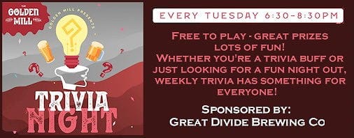 - 6:30-8:30PM - Trivia Night @ The Golden Mill