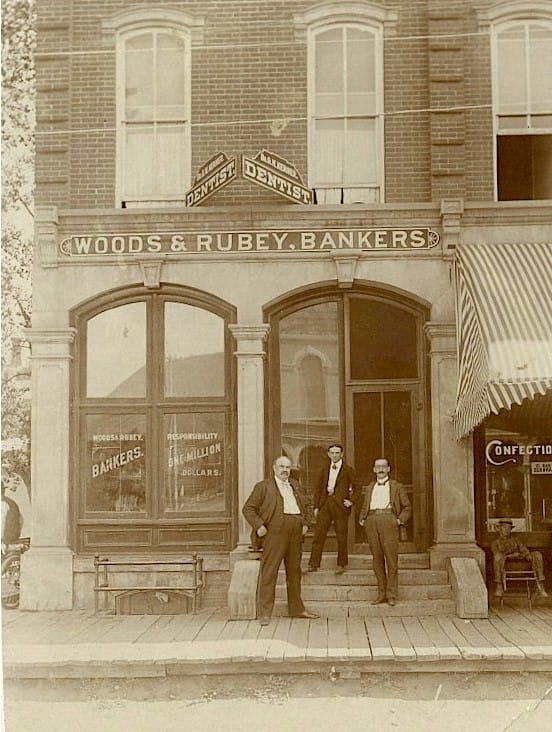 The Rubey Bank began in 1893 when W.S. Wood and Jesse Rubey bought the National Bank of Commerce. Jesse’s brother Harry worked in the bank and eventually rose to become its president. When W.S. Wood retired in 1915, the bank was renamed from "Woods & Rubey Bank" to "Rubey Bank."
