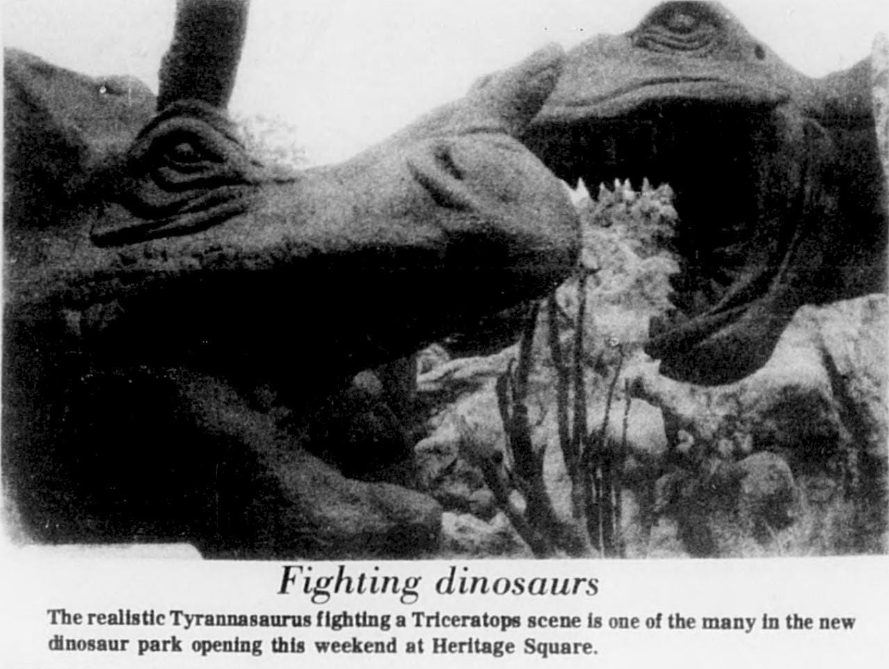 - Often the victim of vandals, the Heritage Square Dinosaur Park was struck by a thief on the evening of July 9. Someone stole a $4,000 styrofoam Dimetrodon replica, weighing 50 to 1000 pounds. (7/15/82)