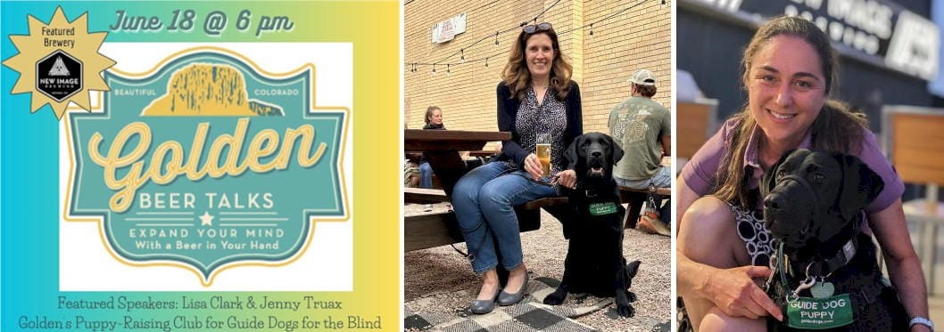 Tonight's Golden Beer Talk features Lisa Clark and Jenny Truax from Golden’s puppy-raising club for Guide Dogs for the Blind. Lisa and Jenny will be accompanied by Twig and Fido, their guide dog puppies.