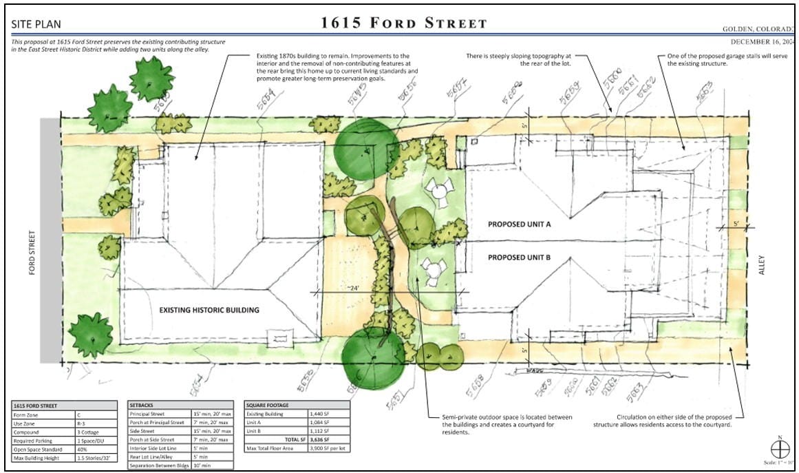 In January, the developer requested a major adjustment to allow different form types to be built on the same lot. Neighbors provided public comment expressing concern about the owners' cars having to make a sharp turn into their garages in such a narrow alley. They were also concerned about where the homeowners could put their trash bins in the narrow alley.