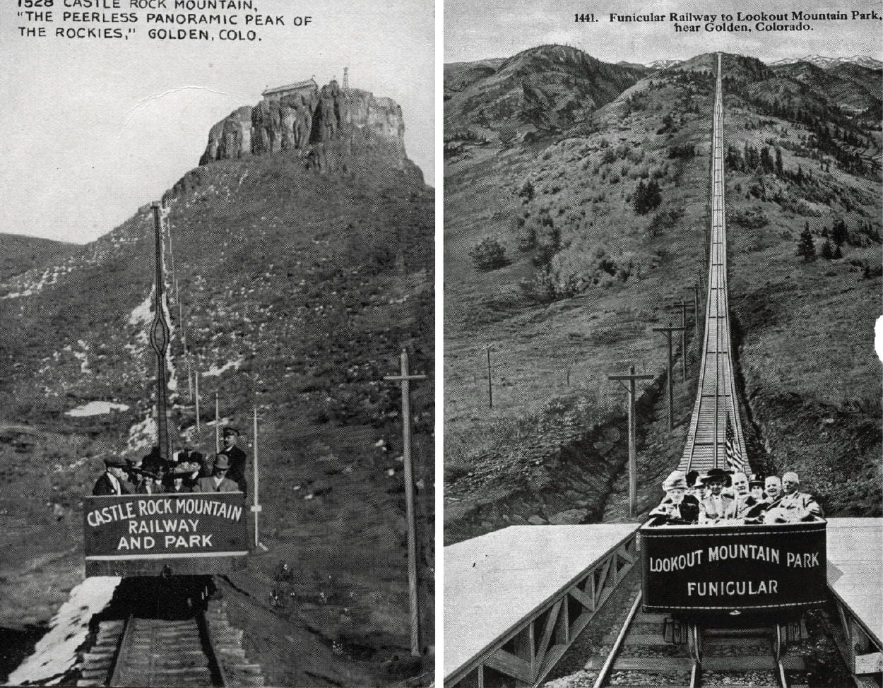Golden’s Funiculars–one on Castle Rock and one on Lookout Mountain – click to enlarge