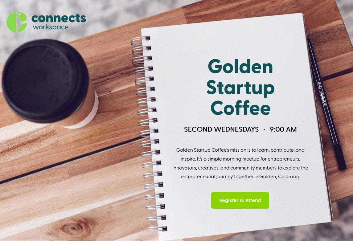 Golden Startup Coffee’s mission is to learn, contribute, and inspire. It’s a simple morning meetup for entrepreneurs, innovators, creatives, and community members to explore the entrepreneurial journey together in Golden, Colorado.