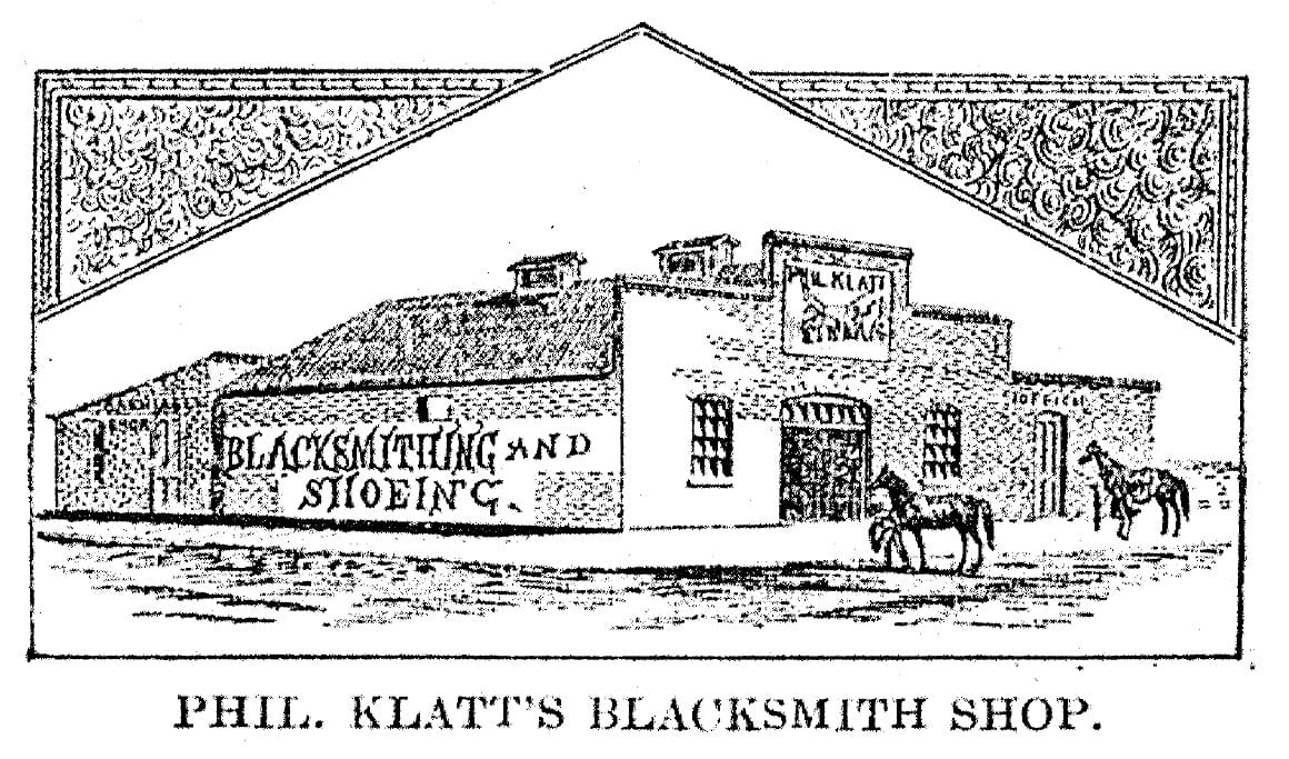 In 1902, Will Fromhart bought the former Phil Klatt Blacksmith shop, which was located on the southeast corner of 12th and Ford. Fromhart had the reputation of being an excellent blacksmith. The Transcript commented that “He is an expert in this line, and makes a specialty of horseshoeing. He shoes so as to correct defects, such as interfering, overreaching and imperfect gaits.”