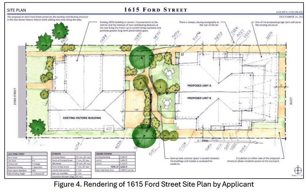 The next case is a request for Certificate of Appropriateness to build a duplex in the backyard of 1615 Ford Street (map).