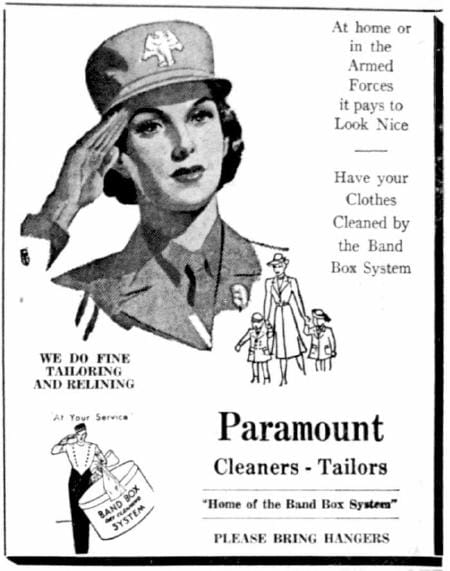 Showing their awareness of current events, the local dry cleaner, which advertised every week, changed their illustration to show a smartly dressed female Marine.