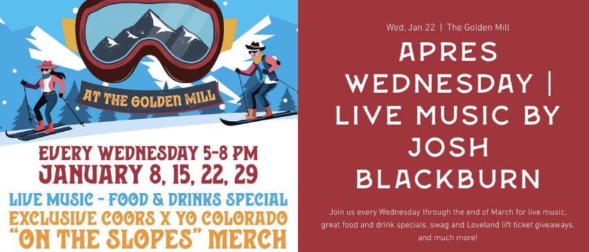 Join us every Wednesday through the end of March for live music, great food and drink specials, swag and Loveland lift ticket giveaways, and much more!