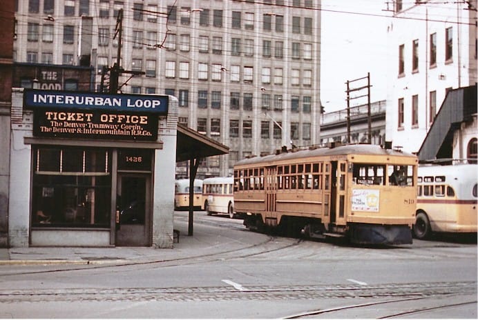 The interurban depot on 13th Street, between Washington and Arapahoe Streets – enlarge