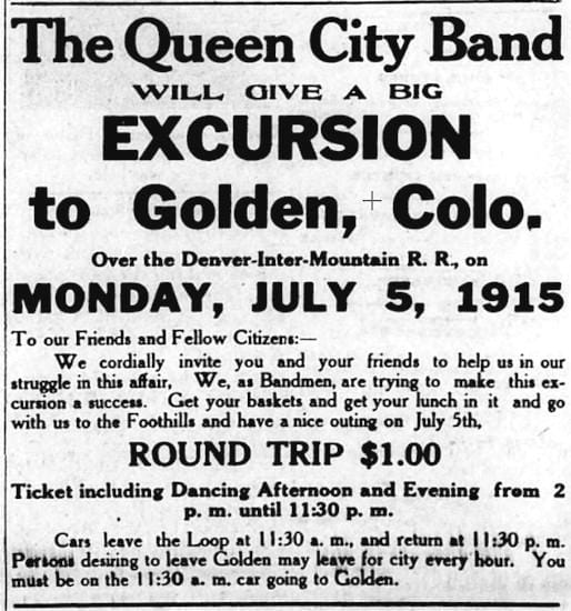 The Moonlight club’s excursion and dance at Golden Monday, June 23, will be the “thing.” Cars leave Fourteenth and Arapahoe at 8:30 sharp. Round trip 60 cents each, including dance. Webster’s full orchestra.