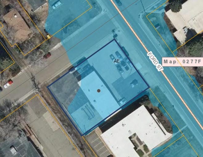 The third case regards 2200 Ford Street (map)--the former Mountain Muffler site. An applicant plans to construct an office building on this site. The lot is approximately 14,000 sq. ft. and the proposed office building would be 11,765 sq. ft. The meeting packet says the building would be "multiple stories" (but does not specify how many). It adds that, if the building were reduced to two stories, it would not need a loading zone.