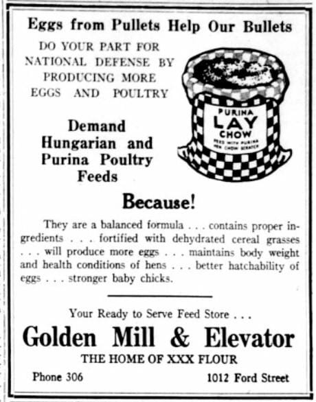 Jefferson County agriculturalists were organizing to raise more food to support the troops and our allies overseas. The Golden Mill’s weekly advertisement encouraged people to raise more chickens, adding that “eggs from pullets help our bullets.”