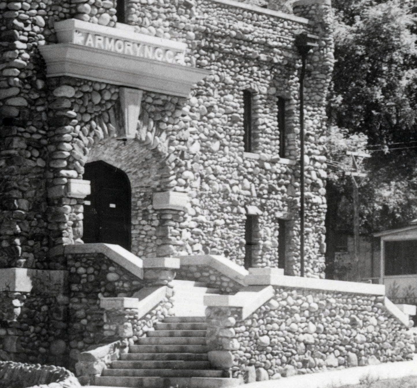 The main entrance to the Armory was on the 2nd floor west side; back then there was a huge tree on the north side of the “porch” and a low wall facing the doors rather than the flat porch of today. The porch, treacherous in snow and icy weather, was the embarkation point for my sister and I as we quickly mastered the art of walking around the entire building on the concrete ledge above the first floor – a feat I would not consider today as it reaches pretty high on the 13th St. side, though as my sister said, Doctor Goad’s right there below if you fall, dummy. And in truth that man did stitch me up many a time.
