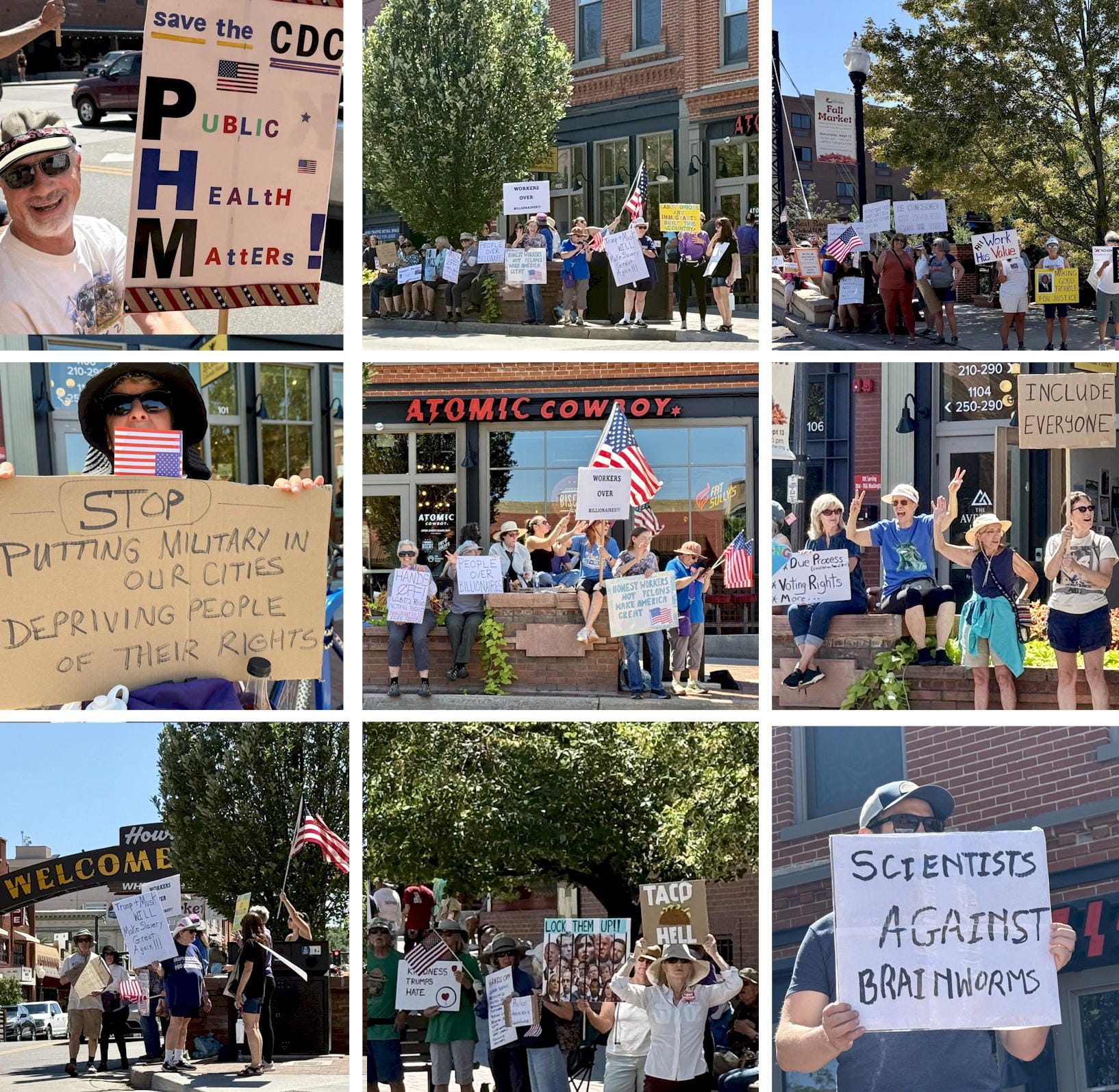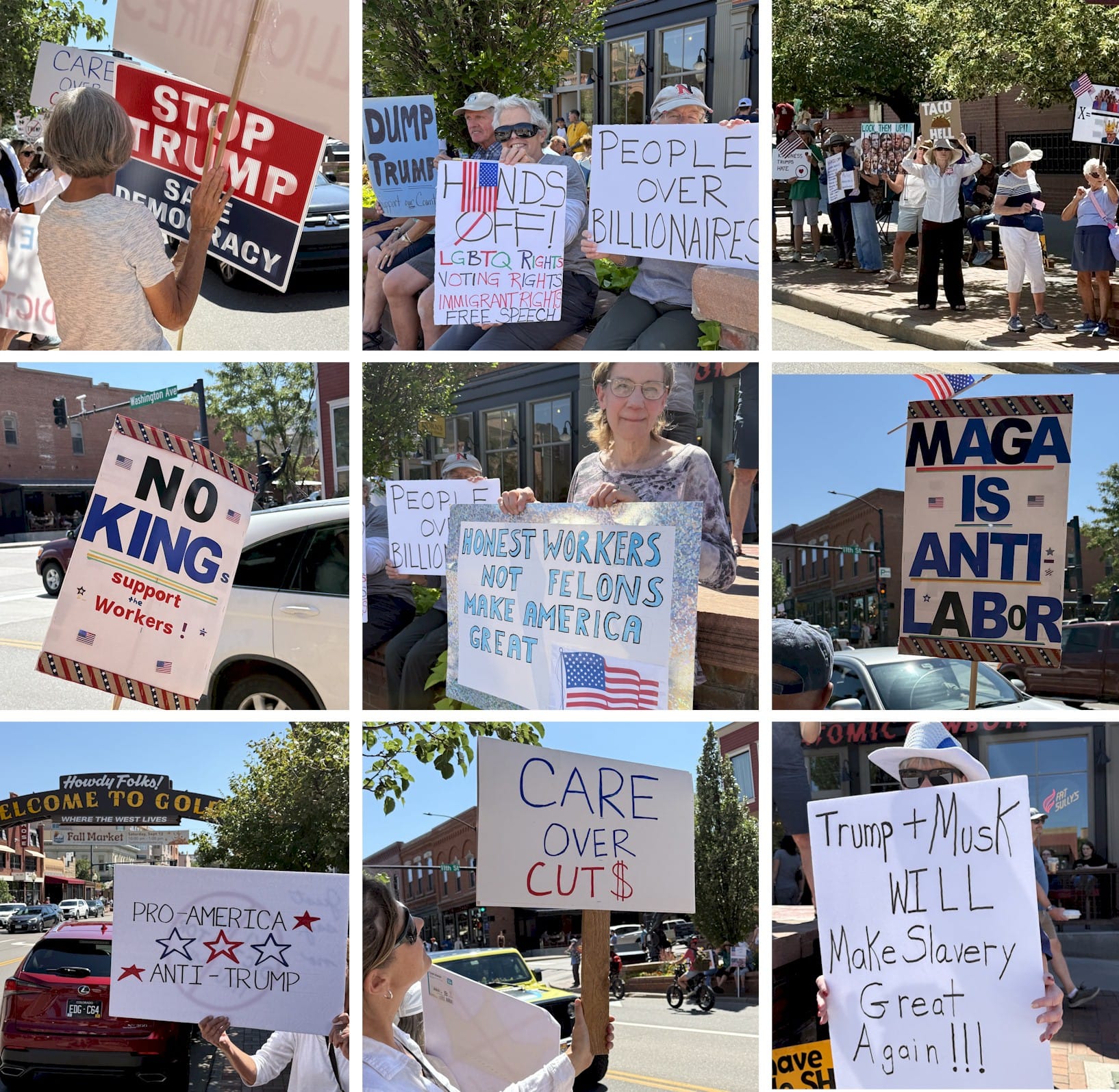 Several hundred Golden people gathered in downtown Golden to protest the state of the country. Many thanks to Chris Davell for covering the event!