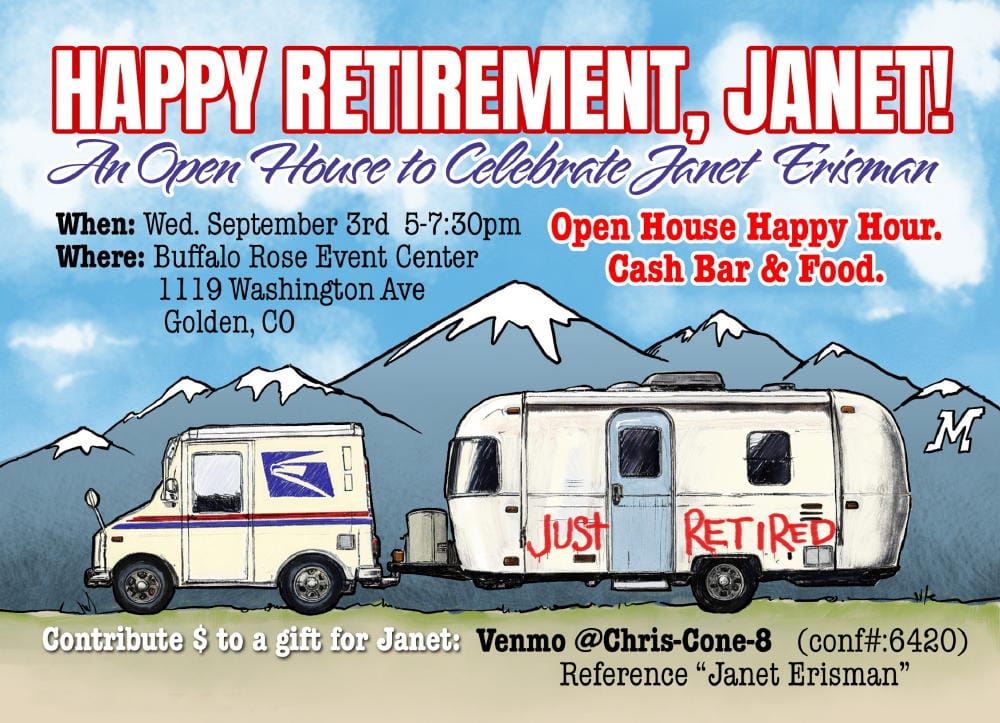 5-7:30PM Retirement Open House for Janet Erisman, USPS @ Buffalo Rose Event Center