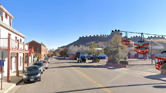 3) The plan recommended an aerial tramway from South Table Mountain to downtown Golden, and another from Lookout Mountain to downtown Golden. The consultants suggested that tramways would relieve the need for roads to the mesa.