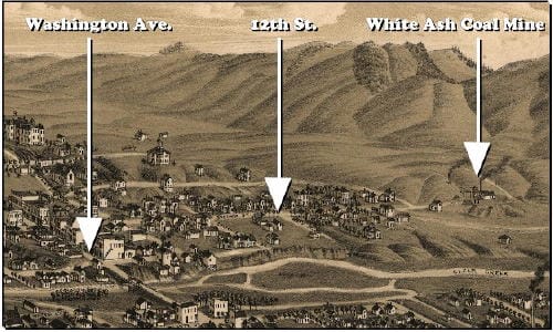 120 years ago this week, 10 men died in what we now remember as the White Ash Mine tragedy. The White Ash Mine was located at the west end of 12th Street, at the approximate site of the Marv Kay Stadium. There were several coal mines in Golden at that time. The Loveland Mine, on the north side of Clear Creek, had been flooded and was closed. The general belief is that the “wall” between the flooded Loveland Mine and the White Ash Mine broke through, and the men drowned in the resulting floodwaters. The men were working about 730 feet below ground. At 3:45PM, they sent up a carload of rock and debris. When the elevator operators tried to send the car back down, they found it couldn’t go past the 650 foot level, so the flood occurred shortly after 3:45PM on September 9, 1889. There is a sculpture memorializing the men and the event at the west end of 12th Street.