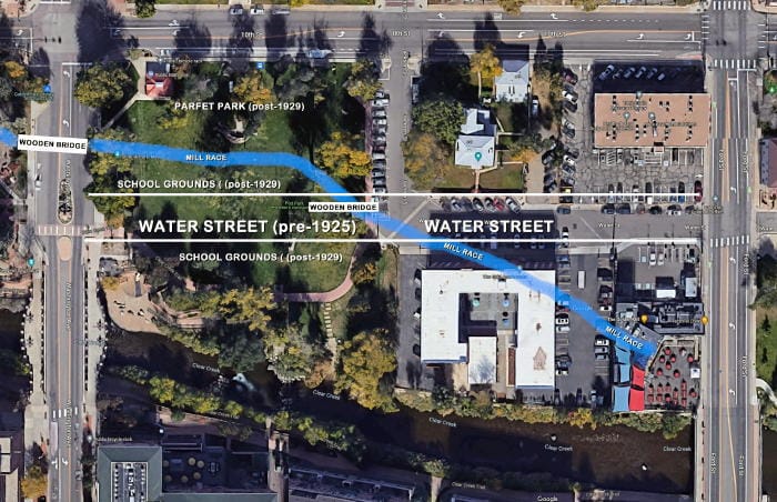 The mill race posed a constant danger. According to one of my readers, the water was 2-3 feet deep. Young children were naturally attracted to the water, and several drowned there over the years. The city finally bought the water rights from the Golden Mill owners and in January of 1954, they filled in the ditch.
