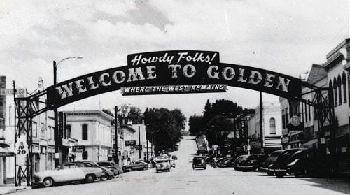 A sign arches over Washington Avenue. It was a big deal in 1949 when installed; it still is. At night it is lit up and easy to read. Unlike the HOLLYWOOD sign, Golden’s is back-to-back – it reads “Welcome” coming into Golden from the south and reads “Welcome” coming in from the north. Where else to do see a two-way sign arching over a main street? Nowhere, I know of.
