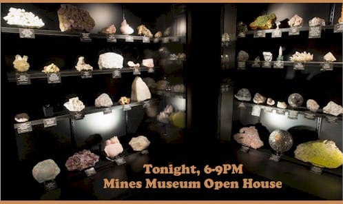 The Colorado School of Mines Geology Museum has a new name: they’re now The Mines Museum. Like the school itself, they now use the tagline Earth – Energy – Environment. Whatever their name, they are holding their annual Open House tonight from 6-9PM. They do this shindig every year, during the Denver Gem & Mineral show. The displays will be great, as always, but you can also check out their much-expanded gift shop, AND…they’ll feed you. Enjoy free drinks and appetizers as you browse the exhibits and hob-nob with fellow rock enthusiasts. No cost to attend.