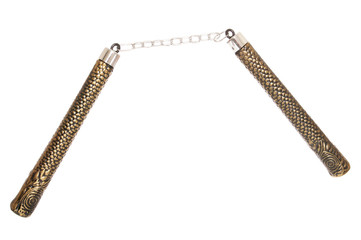 Burglars were in the process of removing a valuable silver tea service when they were surprised by Norman Leland, age 23, who was house-sitting the residence. The burglars attacked Leland with a knife, cutting his arm and one side. Leland produced a pair of nun-chucks and hit his attacker on the head with them. The burglars fled, sans silver tea service. Leland required stitches but no lasting damage was done.