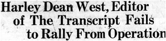 The June 2, 1927 Colorado Transcript brought sad news to Golden: Harley Dean West was dead. “Harl,” as he was known, was the son of Transcript founders George and Eliza West. He had been running the newspaper since shortly after his father’s death in 1906.