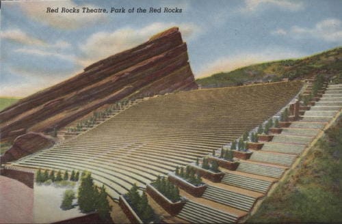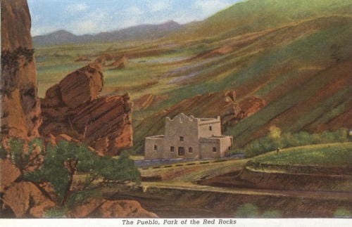 Chief Hosa was the first camp in this area, but it was later joined by camps in Morrison, Mount Vernon Canyon, and on Lookout Mountain. The “boys” provided many valuable services: they fought fires and built roads and bridges. They laid pipe for Golden’s reservoir on Lookout Mountain and built curbs and gutters in our residential neighborhoods. They planted over a million trees in Colorado during a single year, and worked on eradicating pine beetles and grasshoppers during major infestations. They filled sandbags during floods and helped repair damage afterwards. One of their most spectacular accomplishments was building Red Rocks Amphitheater.