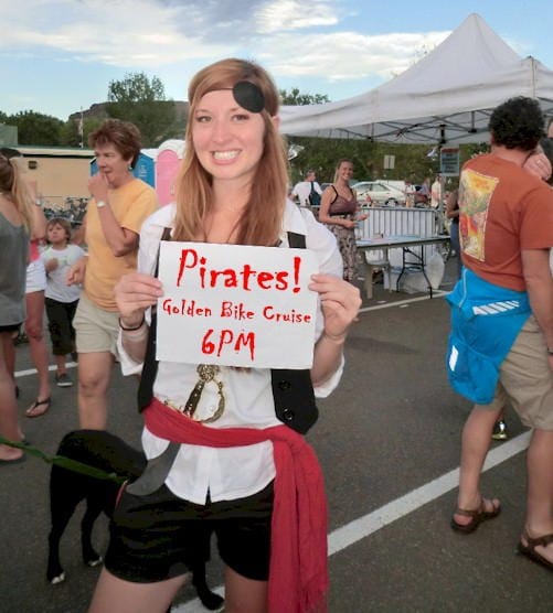 6PM The Golden Bike Cruise starts in the lot west of the Golden Library (10th & Illinois). Bob’s Atomic Burgers will be flipping burgers and New Terrain Brewing will be pouring beer. Half Pint and the Growlers will provide the music. The ride will start at 7PM and the prize drawings will occur afterwards, once the group returns to the parking lot. Tonight’s (optional) costume theme is PIRATES.