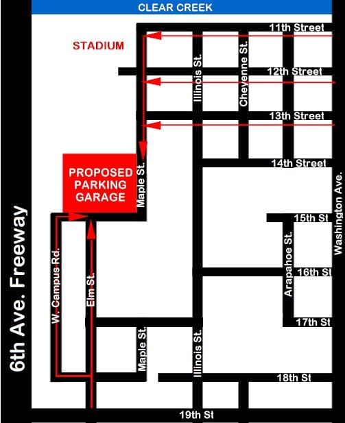 First, the Golden community has been unhappy with the school for failure to provide adequate parking for their students. Because Mines charges for parking, students and staff flood the surrounding streets in search of free parking. This garage is Mines’ proposed solution. They will still charge for parking, but it’s a very convenient location for people going to the campus.