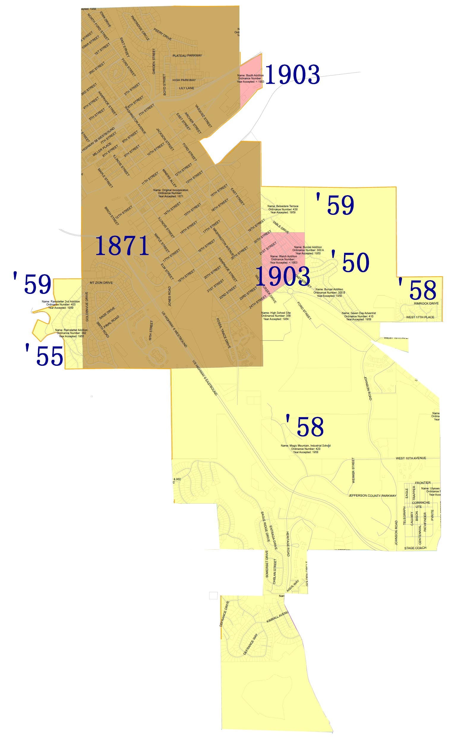 In 1950, Everett Bunzel laid out a new neighborhood south of 23rd Street. He requested annexation to the City of Golden, so the City grew by a few blocks at that time.