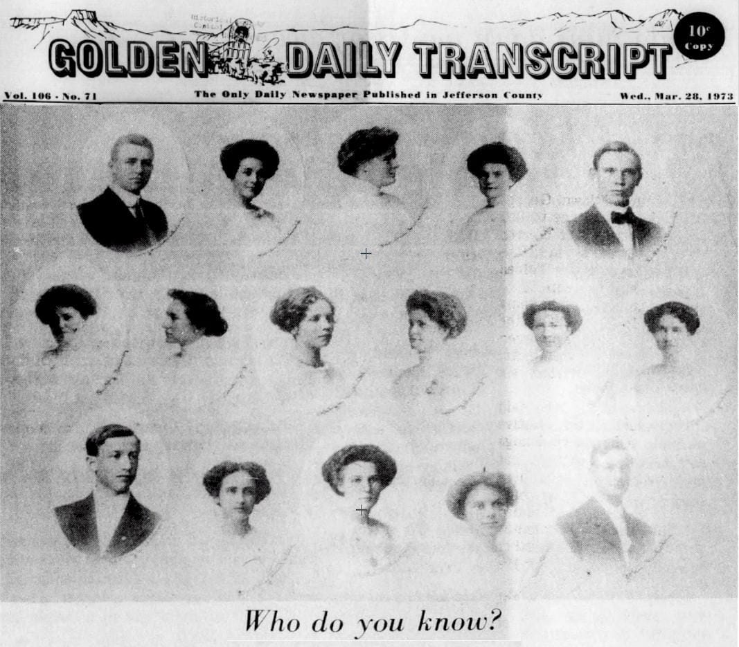Golden High School celebrated its 100th anniversary in 1973, and they were trying to reach alumni to invite them to Centennial Week celebrations.