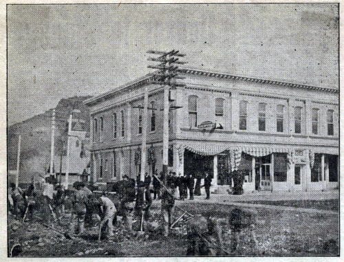 The April 7, 1904 Colorado Transcript announced that our new interurban railroad–the Denver & Northwestern, or D&NW) was nearing completion. The crew shown above was building the track across Washington Avenue and service was expected to begin any day.