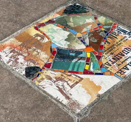 The tiles embedded in the sidewalk behind the library have not held up well, and the Public Art Commission is considering removing them from the public art collection. They will hold a public hearing this morning, so the public has a chance to weigh in on their decision. See the meeting packet to learn more about the deaccessioning process.