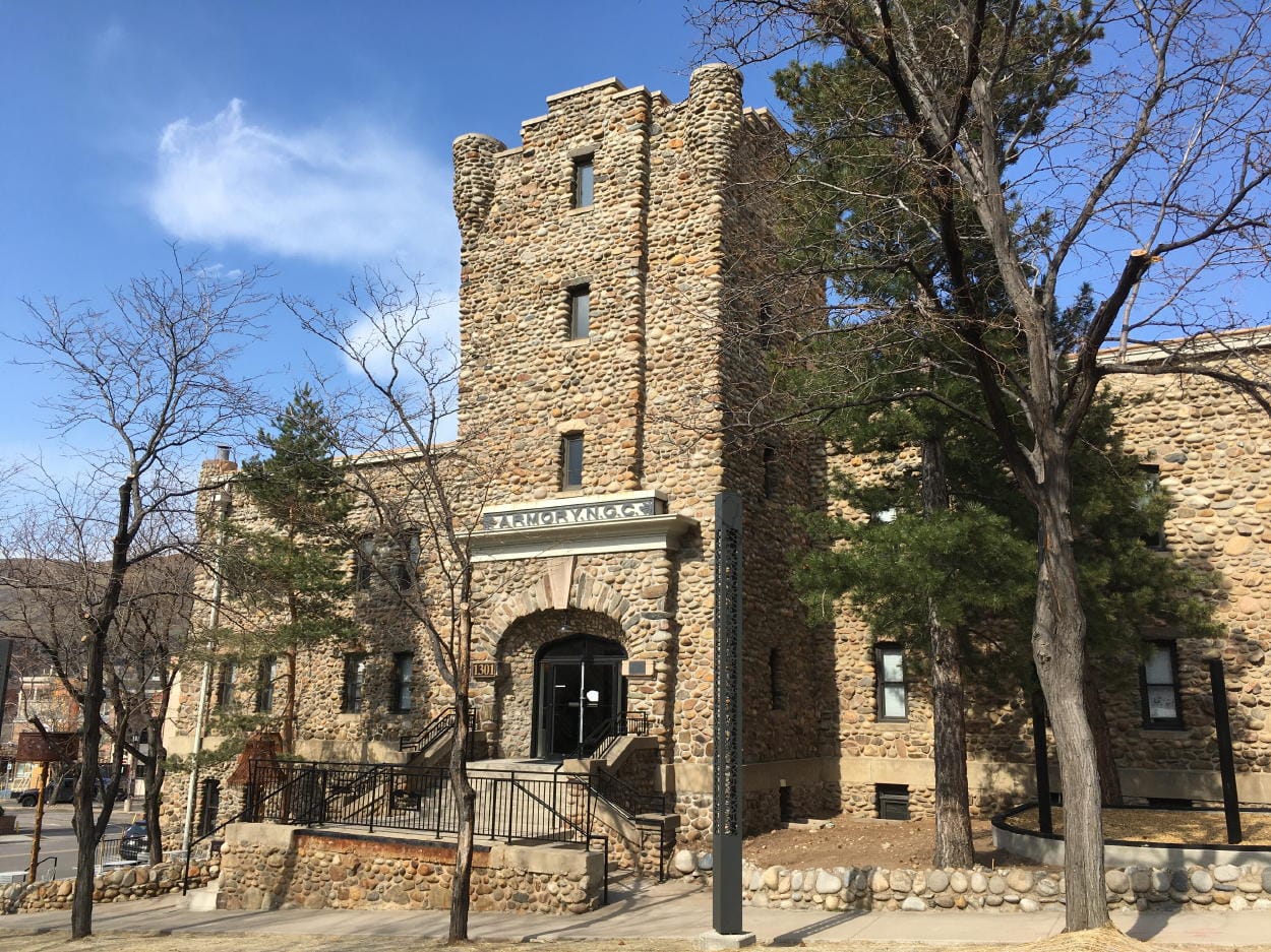 Completed in 1913, the Armory Building (1301 Arapahoe St. – map) was designed by James Gow for the Colorado National Guard. Gow originally planned to use brick to construct the building. Seeking to cut costs, he instead used 3300 wagonloads of cobbles. Sounds simple enough, but Golden was famous for its brick manufacturing, and a brickyard was literally blocks away. Gow was looking for something that was free with minimal labor cost to transport it. He ended up using cobbles and boulders from Clear Creek. But, exactly where in Clear Creek did he get the nice rounded rocks? There’s a hidden backstory here.