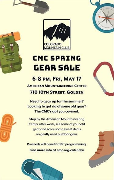 The Colorado Mountain Club is holding their Spring Gear Sale this evening from 6-8PM. It’s a great opportunity to pick up some gently-used outdoor gear, while benefiting the CMC. If you have stuff you would like to sell, you have the option of bringing it in this afternoon. Learn more….