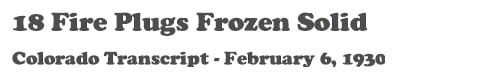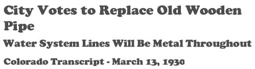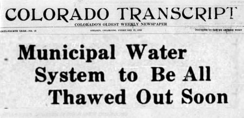 Colorado experienced a significant cold snap in January of 1930, and water systems all over the state were having problems with frozen pipes. Golden’s water was stored in a reservoir on Lookout Mountain, then carried down through thousands of feet of wooden pipes.